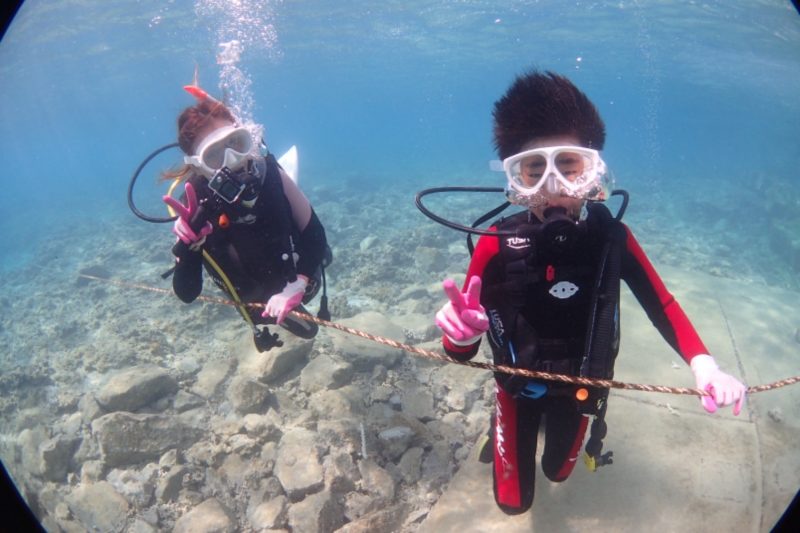 潜行ロープなどを使って、ゆっくりと潜行することが大事です。水圧の変化を急激にしてしまうことが耳抜き不良につながります。