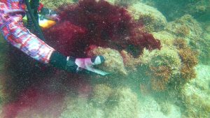 こちらはマクサといって、ウミガメの大好物です。赤い海草ですね。