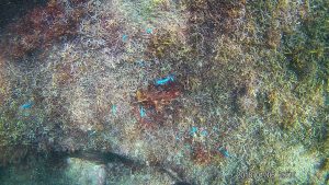 よくみる青い魚です。群れで泳いでいるのにいたる所で遭遇しました。